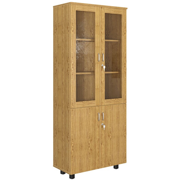 Khoang trên gồm 2 cánh khung kính trong suốt giúp dễ dàng quan sát và trưng bày tài liệu, hồ sơ hoặc vật dụng trang trí.